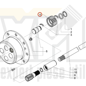 Pinionul planetar face parte din mecanismul diferential de pe utilaj si are rolul de a transmite cuplul si miscarea de rotatie de la schimbatorul de viteze la arborii planetari, si in acelasi timp permite ca rotile motoare ale aceleiasi punti sa se roteasca independent una fata de alta, dand posibilitatea ca la deplasarea automobilului in viraje si pe drumuri cu neregularitati, sau cand razele de rulare ale celor doua roti nu sunt egale, sa parcurga spatii de lungimi diferite . Compatibil pe utilaje Caterpillar 416B, 416C, 416D, 420D, 424D, 426C, 428B, 428C, 428D, 430D, 432D, 436C, 438C, 438D, 442D, CS-531C, CS-531D, CS-533C, CS-533D, CS-563C, CS-563D, CS-573C, CS-573D, CS-583C, CS-583D